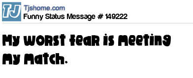 - # 160618 My biggest fear is meeting my soulmate in Arkansas and finding out she's a product of Centuries of inbreeding.