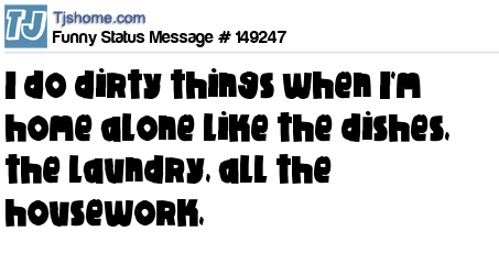X says I do dirty things when I'm home alone like the dishes, the laundry, all the housework,