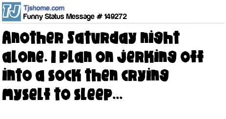 X Another Saturday night alone. I plan on jerking off into a sock then crying myself to sleep...