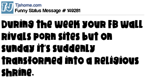 X says During the week your FB wall rivals p0rn sites but on sunday it's suddenly transformed into a religious shrine.
