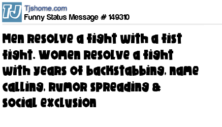 - # 114576 Men resolve a fight with a fist fight. Women resolve a fight with years of backstabbing, name calling, rumor spreading & social exclusion.