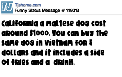 X says California a maltese dog cost around $1000, You can buy the same dog in Vietnam for 5 dollars and it includes a side of fries and a drink.