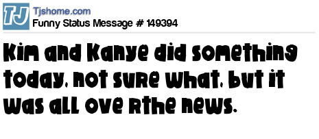 - # 144298 Kanye: Hey baby you wanna role play? Kim: Sure, that sounds super hot! Kanye: Ok, you be Kanye West