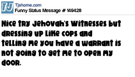 - # 149440 Nice try Jehovah’s Witnesses but dressing up like cops and telling me you have a warrant is not going to get me to open my doo