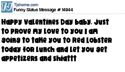 X Happy Valentines Day baby, just to prove my love to you I am going to take you to Red Lobster today for lunch and let you get appetizers and shiattt