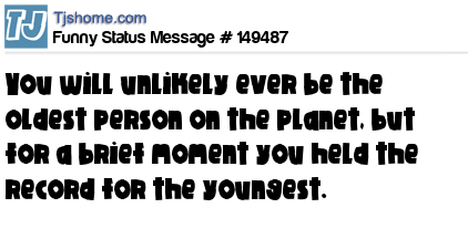 X You will unlikely ever be the oldest person on the planet, but for a brief moment you held the record for the youngest.
