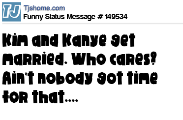 X says Kim and Kanye get married. Who cares? Ain't nobody got time for that....