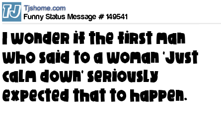 X says I wonder if the first man who said to a woman 'Just calm down' seriously expected that to happen.
