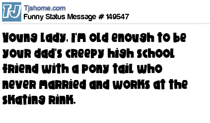 X says Young lady, I'm old enough to be your dad's creepy high school friend with a pony tail who never married and works at the skating rink.