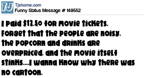 X I paid $12.50 for movie tickets. Forget that the people are noisy, the popcorn and drinks are overpriced, and the movie itself stinks....I wanna know why there was no cartoon.