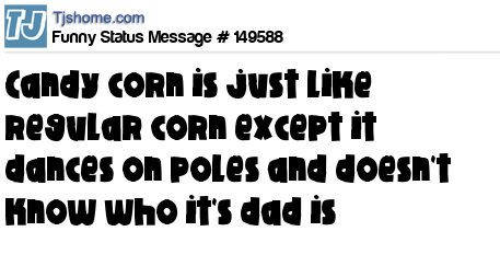 X says Candy corn is just like regular corn except it dances on poles and doesn't know who it's dad is