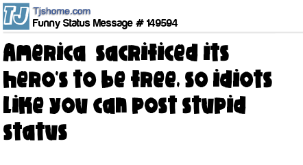 X says America sacrificed its hero's to be free, so idiots like you can post stupid status