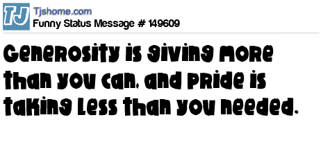 X says Generosity is giving more than you can, and pride is taking less than you needed.
