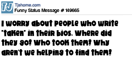 X says I worry about people who write "taken" in their bios. Where did they go? Who took them? Why aren't we helping to find them?
