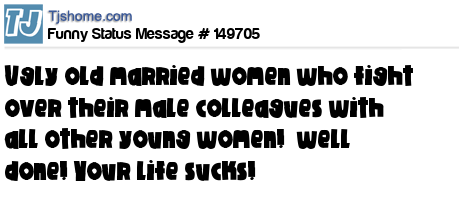 - # 149704 Ugly old women who fight over their male colleagues with all other young women! well done! Your life sucks!