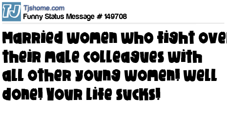 - # 149705 Ugly old married women who fight over their male colleagues with all other young women! well done! Your life sucks!