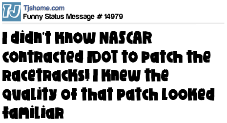 X says I didn't know NASCAR contracted IDOT to patch the racetracks! I knew the quality of that patch looked familiar
