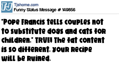 X "Pope Francis tells couples not to substitute dogs and cats for children." TRUE! The fat content is so different, your recipe will be ruined.