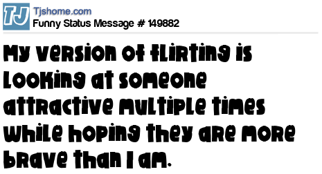 X says My version of flirting is looking at someone attractive multiple times while hoping they are more brave than I am.