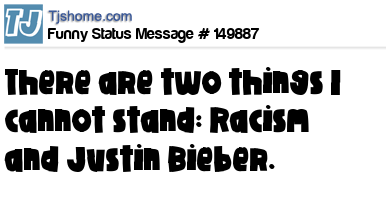 X says There are two things I cannot stand: Racism and Justin Bieber.