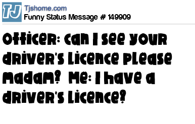X says Officer: can I see your driver's licence please madam? Me: I have a driver's licence?