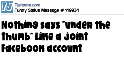 - # 185030 Nothing says "My balls are kept in a jar inside her purse" quite like a joint Facebook account
