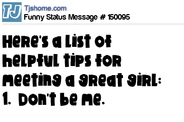 X says Here's a list of helpful tips for meeting a great girl: 1. Don't be me.