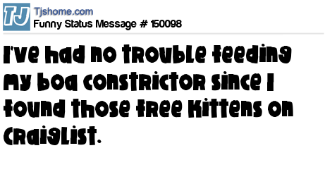 - # 141098 I haven't spent a dime feeding my pet python since I found the "Free Kitten" section on "Craigslist".