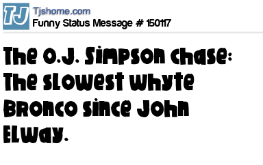 X says The O.J. Simpson chase: The slowest whyte Bronco since John Elway.