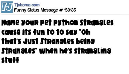 X says Name your pet python Strangles  cause its fun to to say "Oh that's just Strangles being Strangles" when he's strangling stuff
