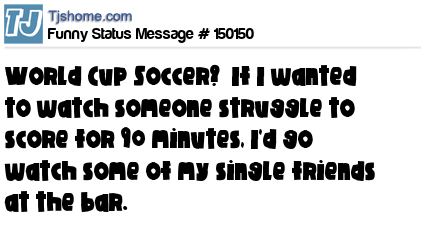 X says World Cup Soccer? If I wanted to watch someone struggle to score for 90 minutes, I'd go watch some of my single friends at the bar.