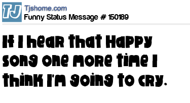 X says If I hear that Happy song one more time I think I'm going to cry.