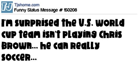 X says I'm surprised the U.S. world cup team isn't playing Chris Brown... he can really soccer...
