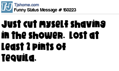 X says Just cut myself shaving in the shower. Lost at least 2 pints of Tequila.