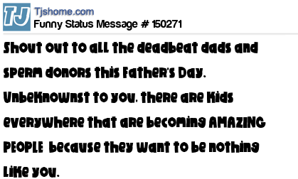 X Shout out to all the deadbeat dads and sperm donors this Father's Day. Unbeknownst to you, there are kids everywhere that are becoming AMAZING PEOPLE because they want to be nothing like you.