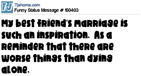 X says My best friend's marriage is such an inspiration. As a reminder that there are worse things than dying alone.