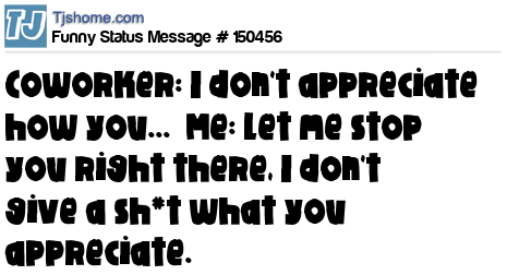 X says Coworker: I don't appreciate how you... Me: Let me stop you right there, I don't give a sh*t what you appreciate.