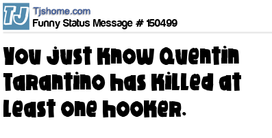 X says You just know Quentin Tarantino has killed at least one hooker.