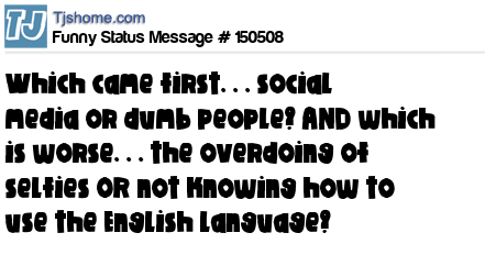 X says Which came first. . . social media or dumb people? AND which is worse. . . the overdoing of selfies OR not knowing how to use the English language?