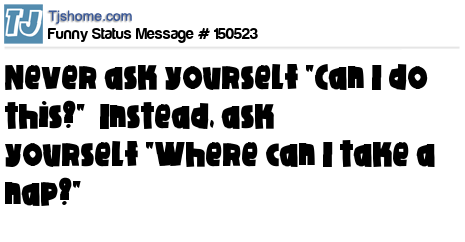 X says Never ask yourself "Can I do this?" Instead, ask yourself "Where can I take a nap?"