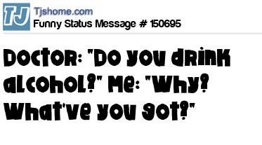 X Doctor: "Do you drink alcohol?" Me: "Why? What've you got?"