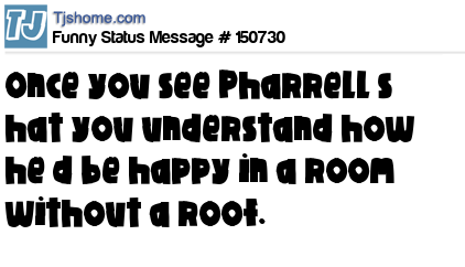 X says Once you see Pharrell’s hat you understand how he’d be happy in a room without a roof.