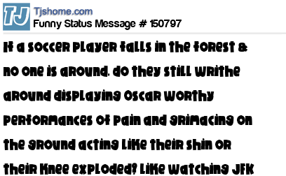 X says If a soccer player falls in the forest & no one is around, do they still writhe around displaying Oscar worthy performances of pain and grimacing on the ground acting like their shin or their knee exploded? like watching JFK get shot