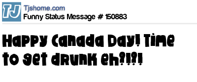 - # 25650 if you have a two-four or a sixty-pounder then come up here to Canada cause we could always use another hoser to party with, we'll have some poutine and maybe we'll even catch a beaver if you're lucky eh? HAPPY CANADA DAY!
