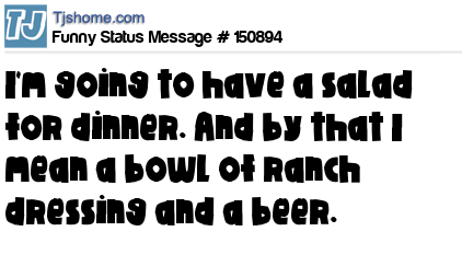 X says I'm going to have a salad for dinner. And by that I mean a bowl of ranch dressing and a beer.