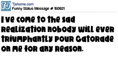 X says I’ve come to the sad realization nobody will ever triumphantly pour Gatorade on me for any reason.