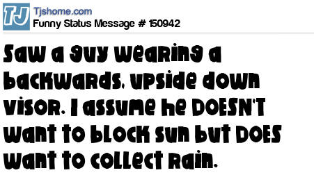 X says Saw a guy wearing a backwards, upside down visor. I assume he DOESN'T want to block sun but DOES want to collect rain.