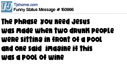 X says The phrase ‘you need Jesus’ was made when two drunk people were sitting in front of a pool and one said “imagine if this was a pool of wine”
