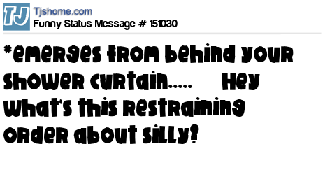 X says *emerges from behind your shower curtain..... Hey what's this restraining order about silly?