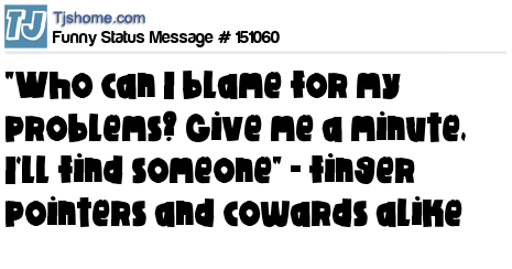 X says "Who can I blame for my problems? Give me a minute, I'll find someone" - finger pointers and cowards alike